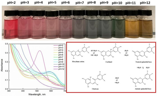 - Silva, V.O.; Freitas, A.A.; Maçanita, A.L.; Quina, F.H. Chemistry and Photochemistry of Natural Plant Pigments: The Anthocyanins. J. Phys. Org. Chem. 2016, 29, 594–599. [Google Scholar] [CrossRef]