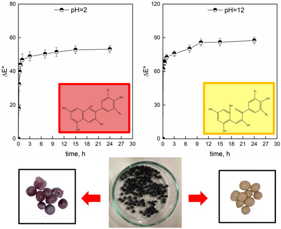 2.6. Colorimetric Response of Lambrusco Extract Solutions