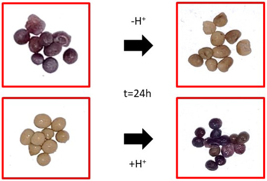 2.7. Colorimetric Response of Lambrusco Extract-Loaded Hydrogel Beads