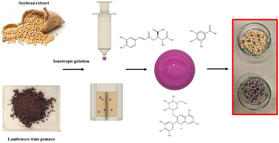Viscusi, G.; Lamberti, E.; Gerardi, C.; Giovinazzo, G.; Gorrasi, G. Encapsulation of Grape (Vitis vinifera L.) Pomace Polyphenols in Soybean Extract-Based Hydrogel Beads as Carriers of Polyphenols and pH-Monitoring Devices. Gels 2022, 8, 734. https://doi.org/10.3390/gels8110734
