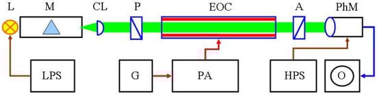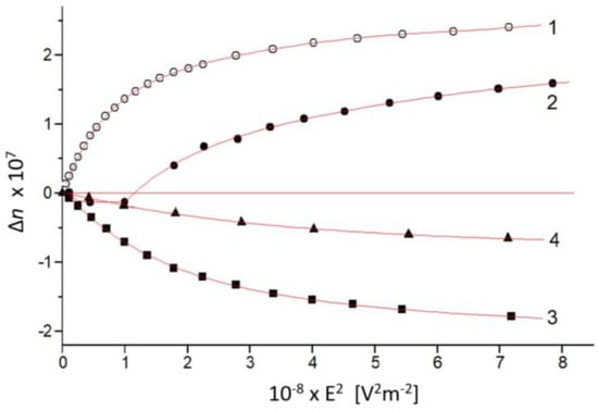 The spontaneous anisotropy Δn0 and electrically induced anisotropy ΔnE of the refractive index n at λ0 are defined from Equation (1):