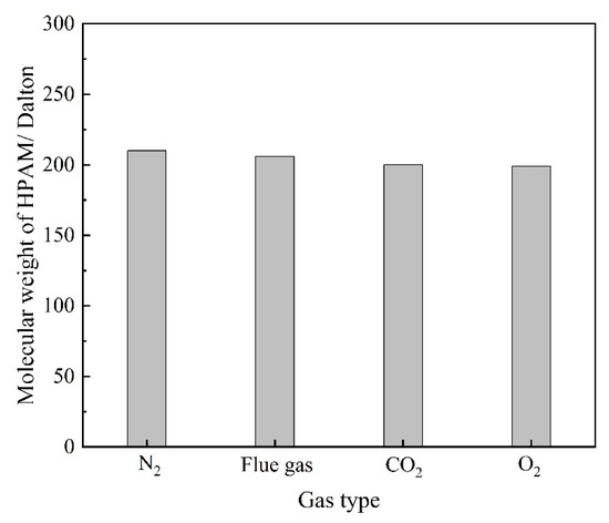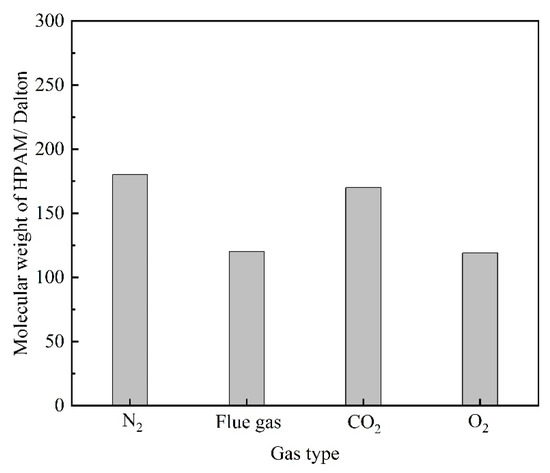 The changes in the molecular weight of HPAM treatment with different gas.