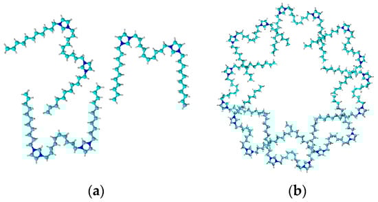 - Li, Q.; Wang, X.; Zhuang, W.; Yao, M.; Pan, Y.; Chen, X. Spacer length effect on the aggregation behaviour of gemini surfactants in EAN. Coll. Polym. Sci. 2021, 299, 685–692. [Google Scholar] [CrossRef]