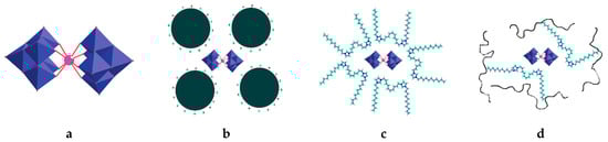 - Li, H.; Qi, W.; Li, W.; Sun, H.; Bu, W.; Wu, L. A highly transparent and luminescent hybrid based on the copolymerization of surfactant-encapsulated polyoxometalate and methyl methacrylate. Adv. Mater. 2005, 17, 2688–2692. [Google Scholar] [CrossRef]