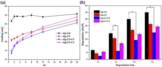 - Wang, H.; Chen, X.; Wen, Y.; Li, D.; Sun, X.; Liu, Z.; Yan, H.; Lin, Q. A study on the correlation between the oxidation degree of oxidized sodium alginate on its degradability and gelation. Polymers 2022, 14, 1679. [Google Scholar] [CrossRef]