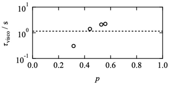 Viscoelastic relaxation time (τvisco) as a function of p. Dashed line represents the dissociation time of end groups estimated by surface plasmon resonance in our previous report [29,30].