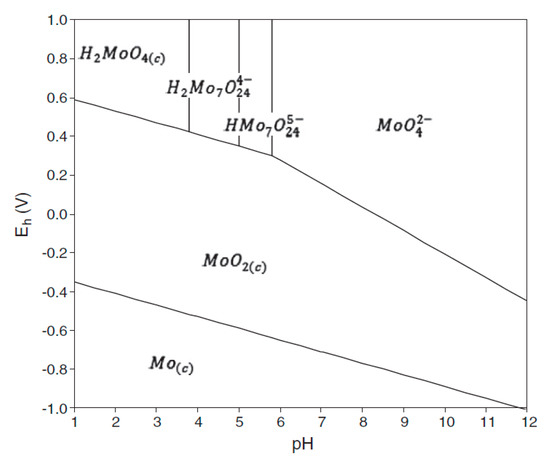 Molybdenum ionic species as a function of pH [8], License No.:5250091421412.