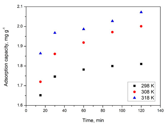 Contact time and temperature present an important effect onto the adsorptive processes. Obtained experimental data are presented in Figure 10.