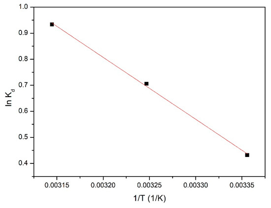 Additionally, it is evident that the temperature has a positive effect on maximum adsorption capacity. Therefore, by temperature increase, an increase of the maximum adsorption capacity was obtained, but not a significant one. Based on that, it can be concluded that the adsorption process can be driven at 298 K.