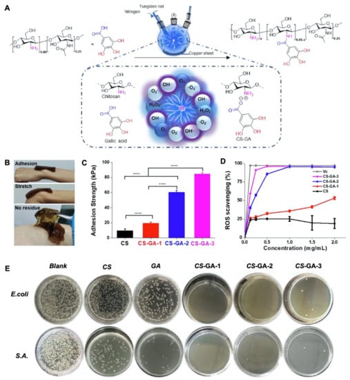 - Sun, C.; Zeng, X.; Zheng, S.; Wang, Y.; Li, Z.; Zhang, H.; Nie, L.; Zhang, Y.; Zhao, Y.; Yang, X. Bio-adhesive catechol-modified chitosan wound healing hydrogel dressings through glow discharge plasma technique. Chem. Eng. J. 2022, 427, 130843. [Google Scholar] [CrossRef]