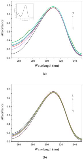 The binding and complex formation between two components can be monitored by electronic absorption. Two absorption peaks (at 226 and 310 nm) were seen on the UV-visible spectra of a drug (TCH). The first peak at 226 nm may be due to the π–π* and the second one (310 nm) due to the n–π* transitions [32,58]. It is worth explaining here that the surfactants did not show any peak in the UV-visible spectrum. The presence of the aminobenzoate group in the drug molecules (Figure 1) is responsible for the characteristic peak. The UV-visible spectrum of TCH with increasing concentration of surfactants is shown in Figure 2. The intensity of UV-visible spectra in the presence of surfactants shows a minor increase in intensity while wavelength remains unchanged. The 2G4 + TCH system shows a greater increase in intensity than TTAB + TCH. This could be due to the positive charge on the head groups of surfactants and drug repelling drug molecules. Therefore, complexation was not observed between drug and surfactant molecules. Sharma and Mahajan the same behavior of trifluoperazine dihydrochloride(TFP) with cationic surfactant has been observed [6].