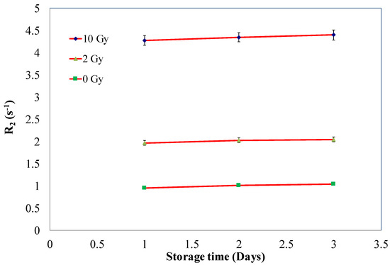 - Rabaeh, K.A.; Eyadeh, M.M.; Hailat, T.F.; Aldweri, F.M.; Alheet, S.M.; Eid, R.M. Characterization of ferrous-methylthymol blue-polyvinyl alcohol gel dosimeters using nuclear magnetic resonance and optical techniques. Radiat. Phys. Chem. 2018, 148, 25–32. [Google Scholar] [CrossRef]