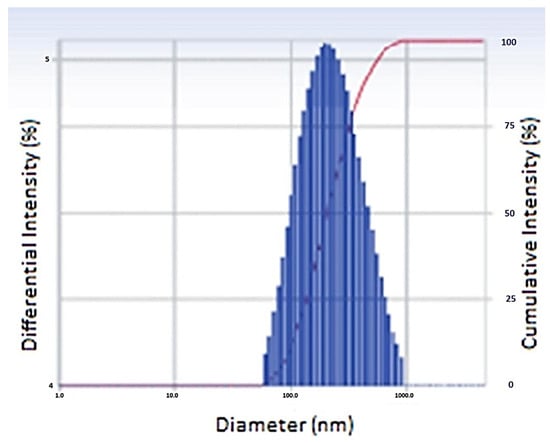 The particle size distribution and morphology are the primary determinants of NP characterization. Particle size was determined at 25 °C by the photon correlation spectroscopy technique []. This analysis measures the particle size of particles suspended in liquids in the range of 0.6 nm to 10 µm with sample suspension concentrations from 0.00001 to 40%. All the data presented are produced under identical production conditions. The interaction of NPs with the biological environment, as well as their electrostatic interaction with bioactive chemicals, is determined by their surface charge and intensity. To maintain particle stability and avoid aggregation, zeta potential levels (high zeta potential values, either positive or negative) are attained.