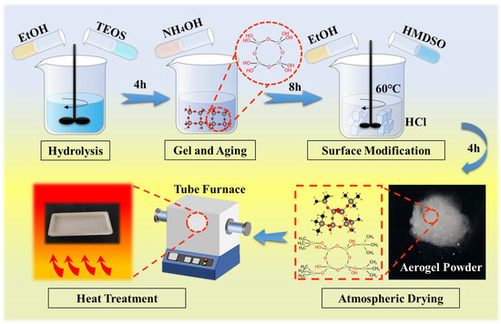 - He, S.; Huang, Y.; Chen, G.; Feng, M.; Dai, H.; Yuan, B.; Chen, X. Effect of heat treatment on hydrophobic silica aerogel. J. Hazard Mater. 2019, 362, 294–302. [Google Scholar] [CrossRef] [PubMed]