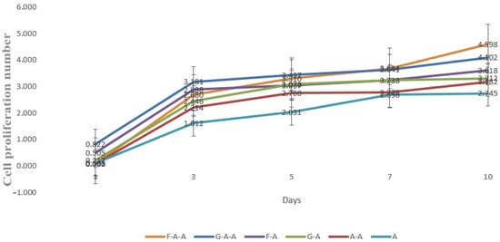 Figure 2e,f) are messy. Some pores are very large, some are very small and some of them even stick together to form thick hydrogel wall, affecting the entry and exit of nutrients, so they are not suitable to be used as a molding material alone. The addition of gelatin and fibrinogen makes the pore’s morphology of the G-A and F-A (
