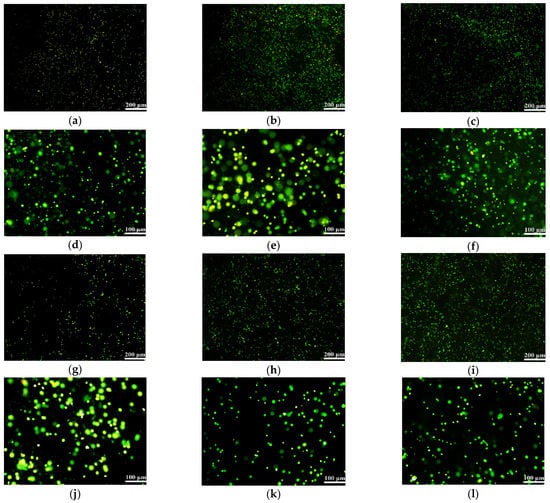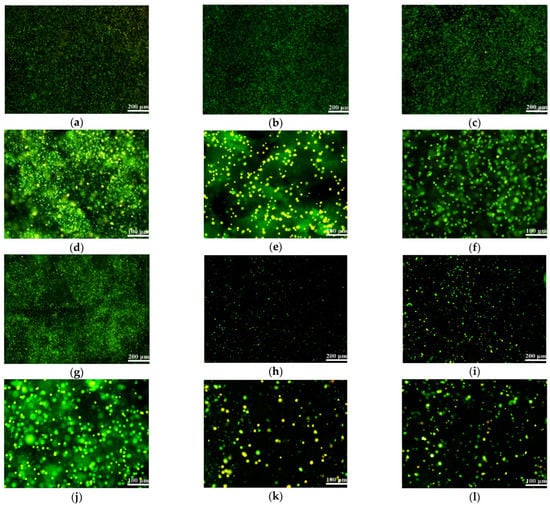 Figure 2). The addition of agarose, gelatin and fibrinogen can reduce the pore size of the alginate hydrogel and can provide more attachment sites for cells, leading to an increase in the cell’s survival rate and proliferation capability. A small amount of additions are preferable for cell survival inside the alginate-based hydrogels, since a large amount of additions could reduce the pore sizes and limit the cell proliferation. The flexible polymer chains provided by gelatin and fibrinogen enable the hydrogels to have a more uniform structural frame with a better cell compatibility [