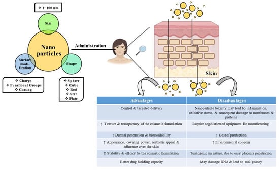 - Kaul, S.; Gulati, N.; Verma, D.; Mukherjee, S.; Nagaich, U. Role of Nanotechnology in Cosmeceuticals: A Review of Recent Advances. J. Pharm. 2018, 2018, 3420204. [Google Scholar] [CrossRef]