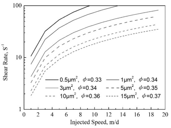 - Injection speed has little effect on the dynamic gelation time in porous media, but has a great effect on the gel strength. The relationship between viscosity and shear rate satisfies the formula (y = a × xb). With the increase of injection speed, the shear rate increases, and the gel strength after dynamic gelation is weaker.