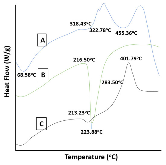 DSC thermograms of HPβCD (A), cytarabine (B) and cytarabine-loaded hydrogels (C).