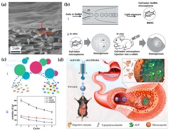 - Zhao, X.; Liu, S.; Yildirimer, L.; Zhao, H.; Ding, R.H.; Wang, H.N.; Cui, W.G.; Weitz, D. Injectable stem cell-laden photocrosslinkable microspheres fabricated using microfluidics for rapid generation of osteogenic tissue constructs. Adv. Funct. Mater. 2016, 26, 2809–2819. [Google Scholar] [CrossRef]