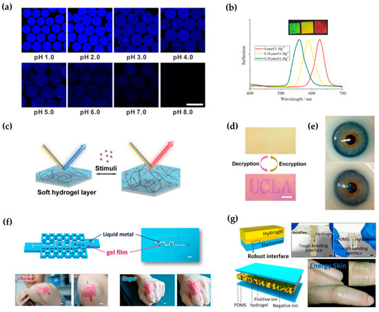 - Fu, F.F.; Shang, L.R.; Chen, Z.Y.; Yu, Y.R.; Zhao, Y.J. Bioinspired living structural color hydrogels. Sci. Robot. 2018, 3, 8580. [Google Scholar] [CrossRef] [PubMed] [Green Version]