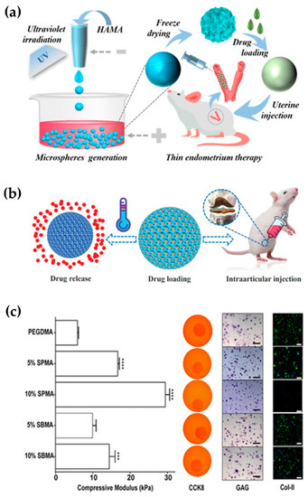 - Lei, L.J.; Lv, Q.Z.; Jin, Y.; An, H.; Shi, Z.; Hu, G.; Yang, Y.Z.; Wang, X.G.; Yang, L. Angiogenic microspheres for the treatment of a thin endometrium. ACS Biomater. Sci. Eng. 2021, 7, 4914–4920. [Google Scholar] [CrossRef]