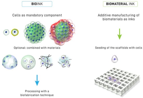 - Groll, J.; Burdick, J.; Cho, D.; Derby, B.; Gelinsky, M.; Heilshorn, S.; Jüngst, T.; Malda, J.; Mironov, V.; Nakayama, K.; et al. A Definition of Bioinks and their Distinction from Biomaterial Inks. Biofabrication 2019, 11, 013001. [Google Scholar] [CrossRef] [PubMed]