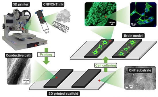 - Kuzmenko, V.; Karabulut, E.; Pernevik, E.; Enoksson, P.; Gatenholm, P. Tailor-Made Conductive Inks from Cellulose Nanofibrils for 3D Printing of Neural Guidelines. Carbohydr. Polym. 2018, 189, 22–30. [Google Scholar] [CrossRef]