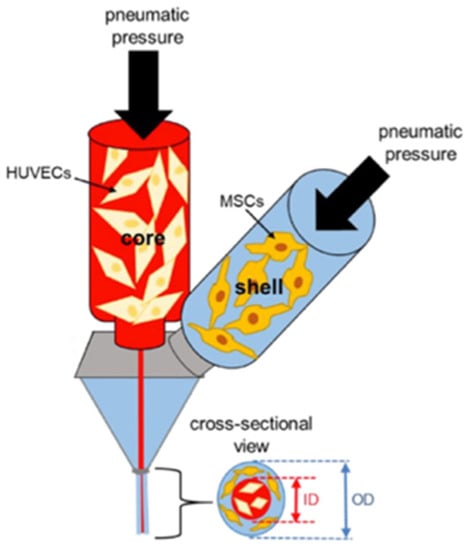 | Disadvantage | Expensive, time-consuming, low stability [3,14,24]. | 1. Limited due to the lack of biocompatible and biodegradable light-sensitive polymers, and the cytotoxicity of photoinitiators [3]. 2. Slow printing rate [21]. | Frequent nozzle blockage [3]. | Distortion in cell morphology may occur due to the high pressure needed to extrude the viscous bioink; does not allow for spatial cell positioning [3,14]. |