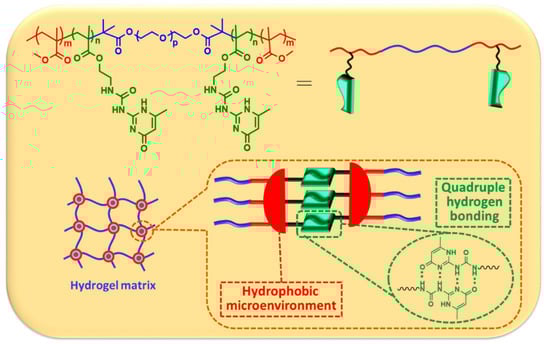The following supporting information can be downloaded at: https://www.mdpi.com/article/10.3390/gels8040244/s1, Scheme S1: Synthesis of UPy-MA monomer; Figure S1: H NMR spectrum of UPy-NMA monomer; Figure S2: Synthesis of RAFT agent CTA; Figure S3: The H NMR spectrum of CTA; Figure S4: The synthesis of macro-RAFT agent (CTA-PEO-CTA); Figure S5: Characterizing the supramolecular polymers using H NMR.