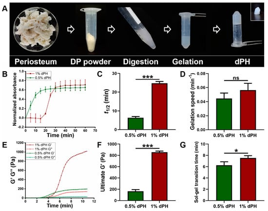 - Qiu, P.; Li, M.; Chen, K.; Fang, B.; Chen, P.; Tang, Z.; Lin, X.; Fan, S. Periosteal matrix-derived hydrogel promotes bone repair through an early immune regulation coupled with enhanced angio- and osteogenesis. Biomaterials 2020, 227, 119552. [Google Scholar] [CrossRef]