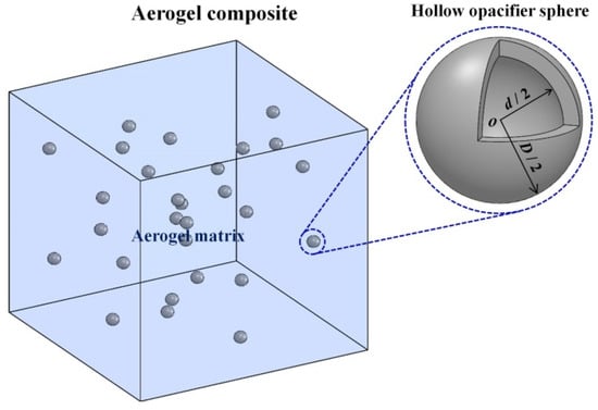 Schematic of silica aerogel composite doped with randomly distributed hollow opacifiers with an outer diameter of and an inner diameter of .