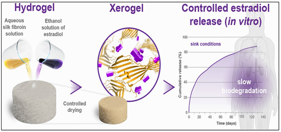 - Križman, K.; Novak, S.; Kristl, J.; Majdič, G.; Drnovšek, N. Long-acting silk fibroin xerogel delivery systems for controlled release of estradiol. J. Drug Deliv. Sci. Technol. 2021, 65, 102701. [Google Scholar] [CrossRef]