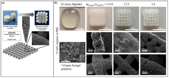 - Rößler, S.; Brückner, A.; Kruppke, I.; Wiesmann, H.-P.; Hanke, T.; Kruppke, B. 3D Plotting of Silica/Collagen Xerogel Granules in an Alginate Matrix for Tissue-Engineered Bone Implants. Materials 2021, 14, 830. [Google Scholar] [CrossRef]