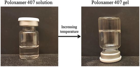 Sol-to-gel transition of poloxamer 407. Tsol–gel in thermo-sensitive gels is dependent on the polymer concentration. The image has been taken from the publication by Fakhari et al. [] with permission.