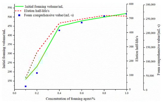 Concentration of foaming agent-initial foaming volume, foam half-life, and composite value.