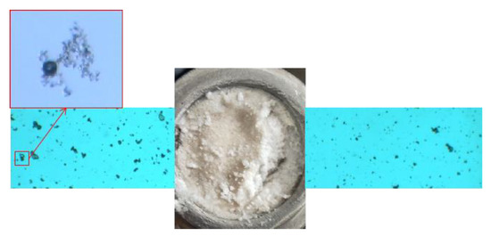 The prefabricated gel particles include microspheres (WQ-100), PEG-1, PPG, HPAM, organochromium crosslinking agent, foaming agent, and formation water (60,000–100,000 mg/L), all provided by Changqing Oilfield. Microscopic tests of WQ-100, PEG-1, and PPG by Microscope First. A total of 0.5 g of prefabricated gel particle plugging agent and 100 mL of formation water/kerosene was sequentially added to 6 beakers and stirred with a magnetic stirrer for 10 min. Next, the magnetron was taken out and all the beakers were sealed and placed in a hot air drying oven with a constant temperature of 70 °C [19]. Finally, the microscopic morphology of WQ-100, PEG-1 and bulk particles was observed by the microscope, and the particle size changes were analyzed and counted.