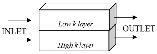 We also investigated the effect of IAPV on gelant placement by considering dynamic features. A conceptual linear flow model was assumed with a low permeability layer (e.g., matrix) and a high permeability layer (e.g., fracture), as shown in Figure 10.