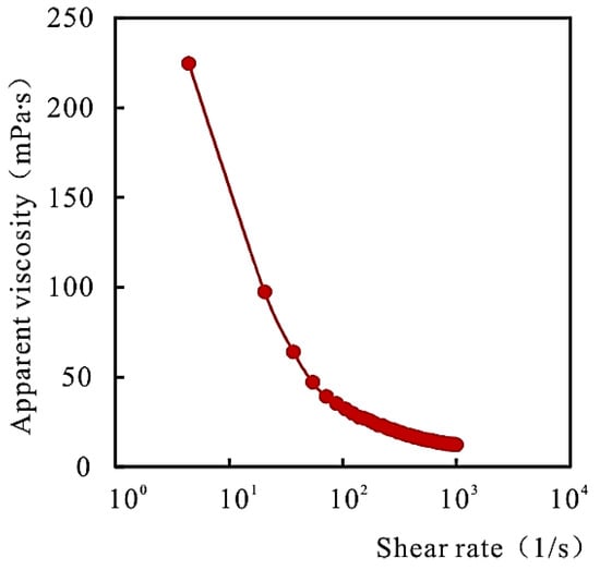 A salt-resistant polymer with a molecular weight of 19 million and a concentration of 2000 mg/L was prepared with simulated injection water. The rheological properties of the polymer under reservoir temperature were tested. See Figure 1 for the rheological properties of the polymer.