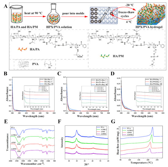 - Chen, K.; Liu, J.L.; Yang, X.H.; Zhang, D.K. Preparation, optimization and property of PVA-HA/PAA composite hydrogel. Mat. Sci. Eng. C-Mater. 2017, 78, 520–529. [Google Scholar] [CrossRef] [PubMed]