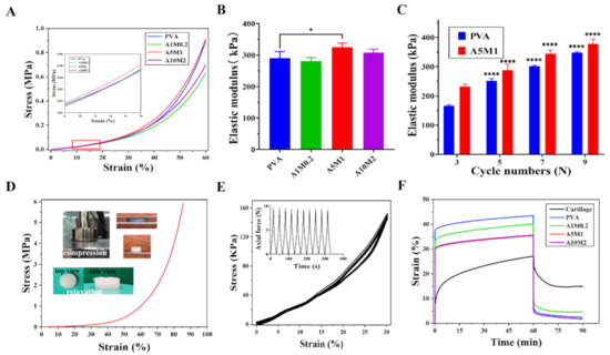 - Stammen, J.A.; Williams, S.; Ku, D.N.; Guldberg, R.E. Mechanical properties of a novel PVA hydrogel in shear and unconfined compression. Biomaterials 2001, 22, 799–806. [Google Scholar] [CrossRef]
