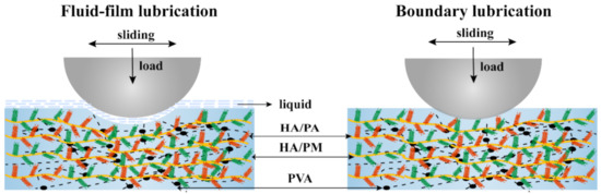 - Rong, M.M.; Liu, H.; Scaraggi, M.; Bai, Y.Y.; Bao, L.Y.; Ma, S.H.; Ma, Z.F.; Cai, M.R.; Dini, D.; Zhou, F. High Lubricity Meets Load Capacity: Cartilage Mimicking Bilayer Structure by Brushing Up Stiff Hydrogels from Subsurface. Adv. Funct. Mater. 2020, 30, 2004062. [Google Scholar] [CrossRef]
