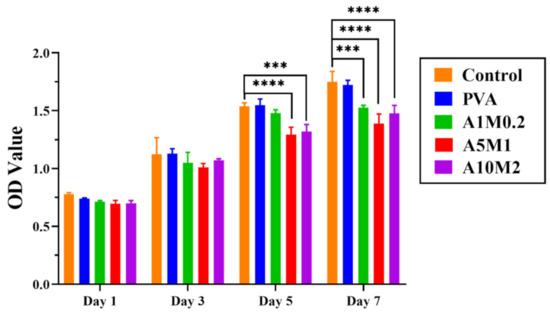 2.5. Cytotoxicity Properties of the HPX/PVA Hydrogels