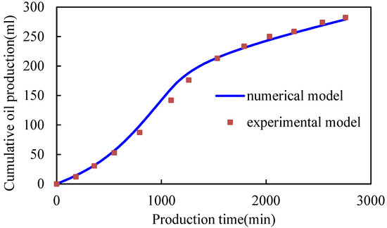 Comparison of experimental and numerical model cumulative oil production.