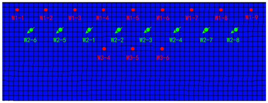 Chemical flooding well pattern of reservoir model.