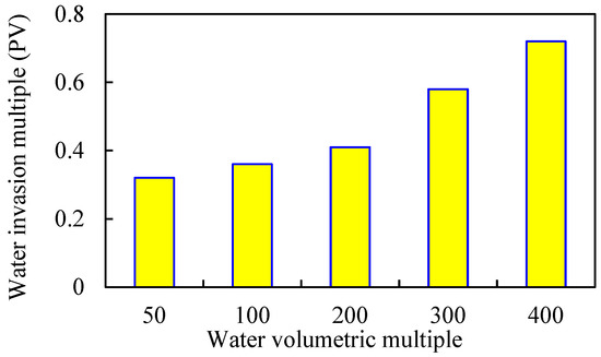 Water invasion multiple under different water volumetric multiples.