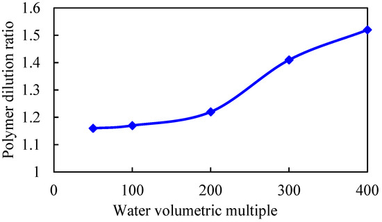 Under the condition that other parameters remain unchanged, the binary displacement process is set with the injection volume of 0.6 PV and the injection rate of 0.1 PV/a. The model adopts different water volumetric multiples, which are 50, 100, 200, 300, and 400 times, respectively. The simulation calculation results are shown in Figure 7, Figure 8, Figure 9 and Figure 10.