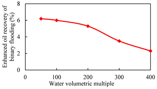 Variation curve of enhanced oil recovery in different water volumetric multiples.
