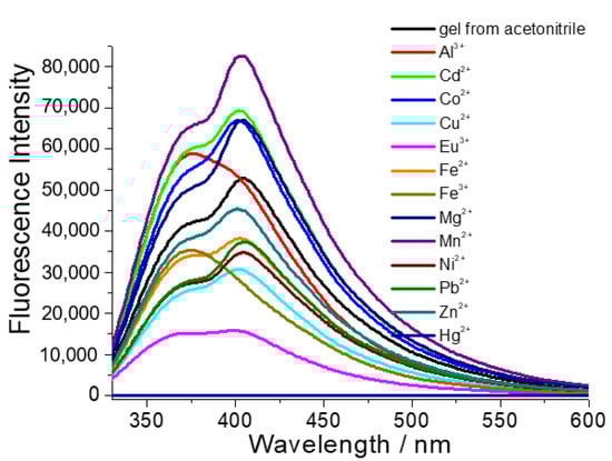 Fluorescence emission spectra of gels of 1 with different metal ions (1.0 eq.).