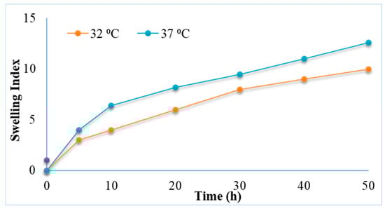 Swelling index of 5FU-Alg-Np-HG at 32 and 37 °C.